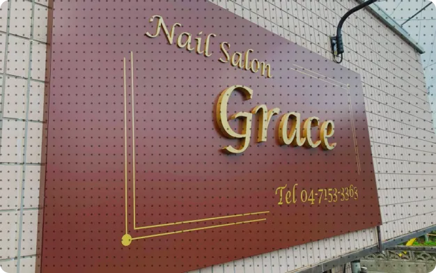 壁面看板、突き出し(袖)看板、スタンド看板、ウィンドウサイン、LEDを使った立体文字看板など、多種多様な看板製作に対応しています。お客様の目的や設置環境に合わせて最適な種類をご提案します。
